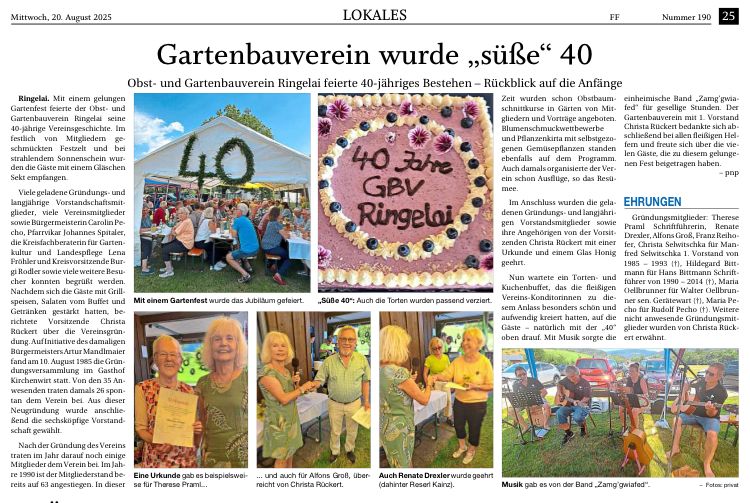 Gartenbauverein wurde „süße“ 40 – Obst- und Gartenbauverein Ringelai feierte 40-jähriges Bestehen – Rückblick auf die Anfänge.