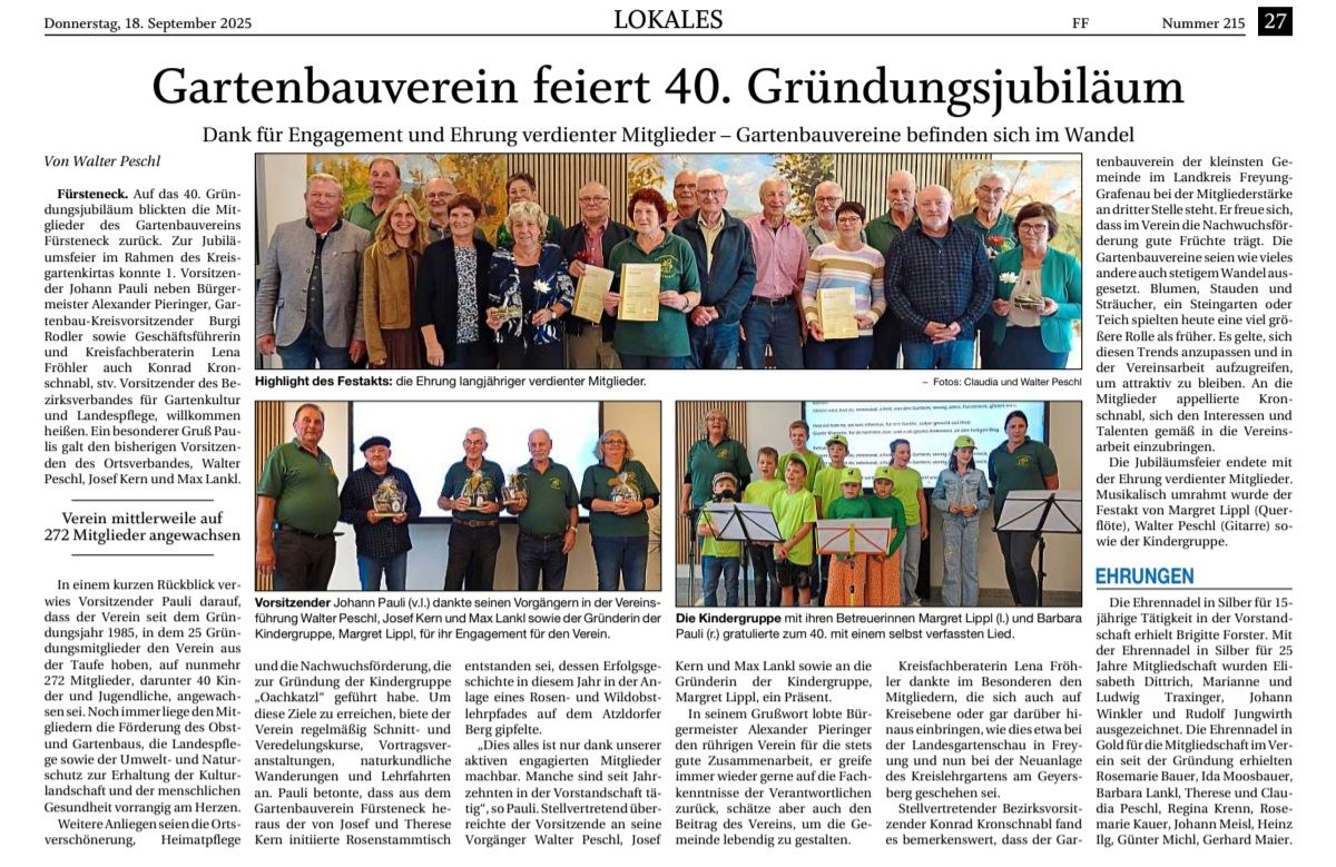 Heuer wird der Gartenbauverein 40 Jahre alt. Fürstenecker planen Kreisgartenkirta als Highlight – Derzeit insgesamt 270 Mitglieder.