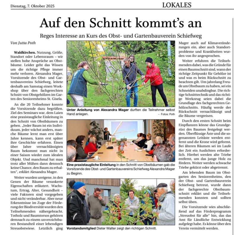 Eine große Traube von Obstbaum-Fans – Schnittkurs des Gartenkultur-Kreisverbands in Thurmansbang kommt bei 60 gut an.